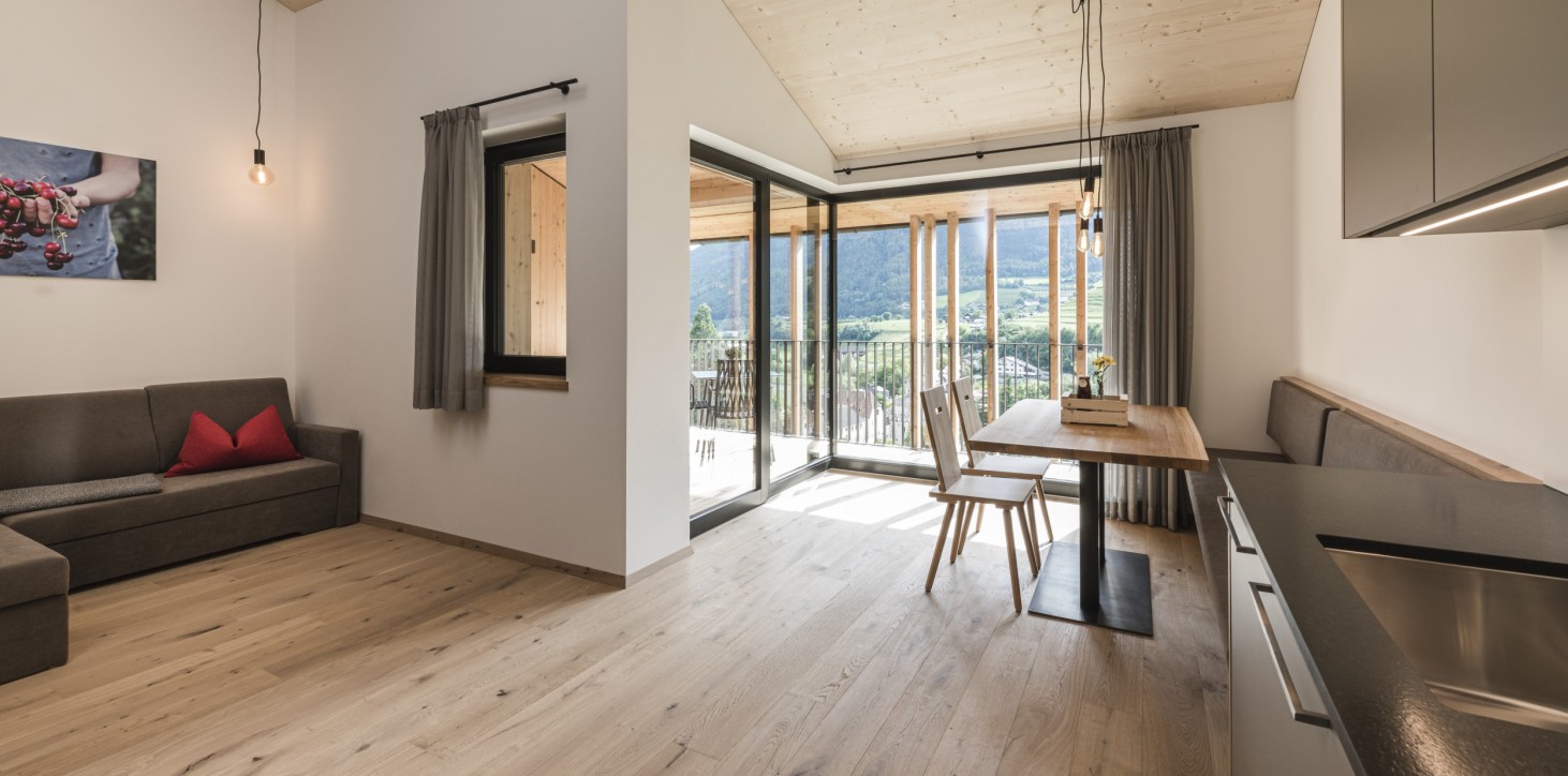 Unsere Wohnungen eignen sich perfekt für die gemeinsame Zeit mit der Familie und den Urlaub mit Kindern! Unser Apartment „Nuss" ist barrierefrei und du als unser Gast hast du auch mit Rollstuhl oder Kinderwagen uneingeschränkt Platz.